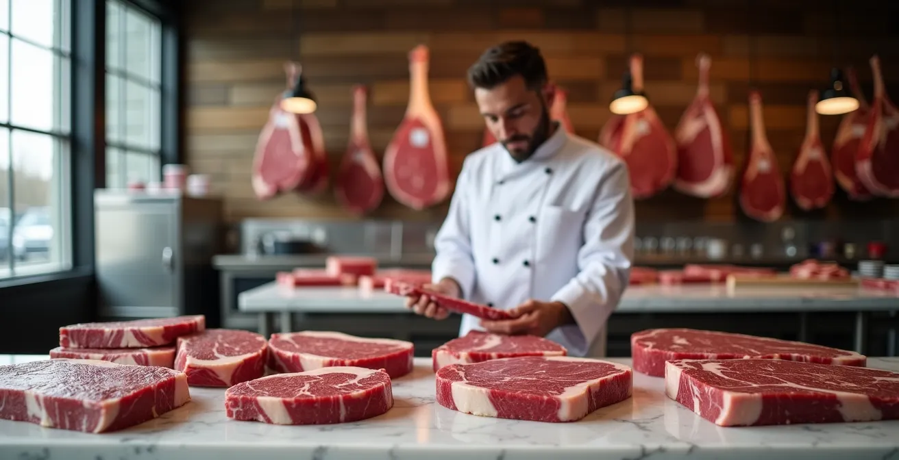 The secret isn’t just in deciphering grades, but in learning to read the meat itself. The true difference between Alberta and Texas beef, for instance, lies in the nutty, clean flavour imparted by our local barley. The choice between a fresh steak and a 45-day dry-aged one is a choice between bright, beefy flavour and deep, funky complexity. This guide will take you beyond the labels and into the mind of a butcher. We’ll explore what makes a dry-aged steak worth the price, decode the “barley signature,” find the perfect cut for a campfire cookout, and uncover the stories that made beef Alberta’s cultural identity. You’ll learn not just how to buy a steak, but how to truly appreciate it.